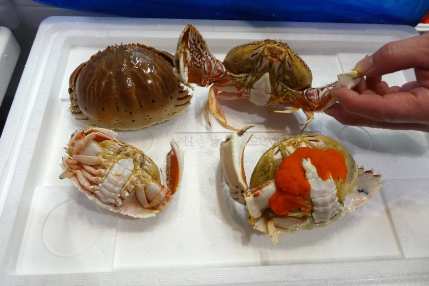 食材NEWS New 2025.10.9 【トラフカラッパ】右のハサミの突起で貝を割る 【トラフカラッパ】この仲間は日本では15種ほどが知られていますが、トラフカラッパが最も多い。特徴的な大きなハサミは、左右で形が違います。右のハサミの可動指と不動指に向き合う突起があり、缶切りのように使って巻貝を割って食べ […]