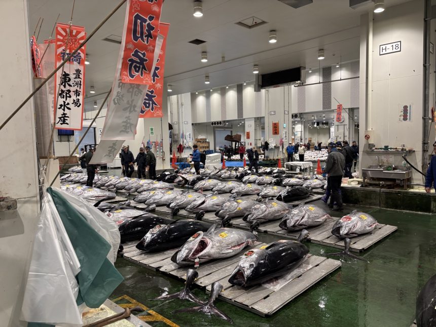 【イボダイ】「えぼだい」の名で通ります。左右に押しつぶされたような体は銀白色で、えらあなの上方に暗色の斑紋があります。写真は千葉県千倉産で、神奈川県松輪産も並んでいました。やわらかい身をしていますが、上品に脂がのる魚。塩焼きや煮つけ、ムニエルなどで美味しく、干物も人気が高い。