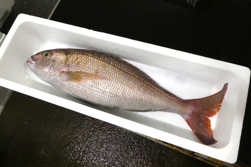 【マダイ】旬は春だけではありません。マダイの産地として名を馳せる兵庫県明石では、秋から冬に向かう時期の「紅葉鯛」を、旬の魚として珍重しています。越冬のために脂を蓄え、上品な甘みと旨味を持ち合わせているそうです。刺身、炙り、湯引きのほか、焼き物、鯛茶漬けなどにも。写真は約1.3kg。