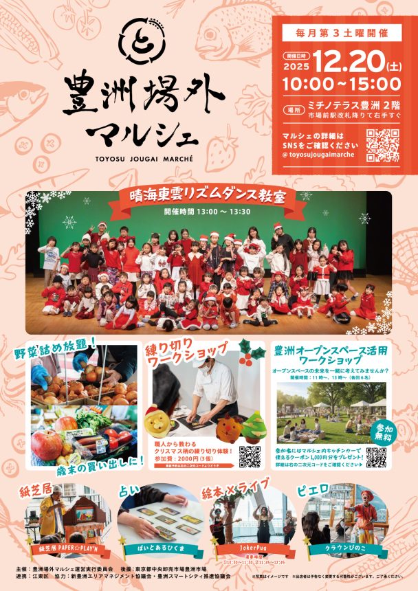 東京都中央卸売市場は、豊洲市場外の「豊洲千客万来」の食楽棟2階にあるPRコーナー「いちばの広場」などで、定期的にイベントを行っています。