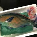 【ハマダツ】ダツ科の魚は上あごと下あごが著しく長く、歯は鋭いのが特徴。ダツとハマダツはよく似ていますが、ハマダツは体側の後方に、いくつかの暗色横帯があるので見分けられます。また、ダツの尻びれは背びれより前にありますが、ハマダツはほぼ同じ位置にあります。写真は岩手県産。脂は少ない。