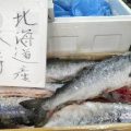 【キジハタ】市場で「あずきはた」、西日本で「あこう」。写真は石川県金沢産で箱には「なめら」の表示、この辺りの呼び名のようです。数多く入荷するハタ科の魚のなかでは、季節を問わずもっともよく見かけます。褐色から橙色の体に橙色の斑点が散在します。背びれの基部に1黒斑。刺身や煮つけなど。