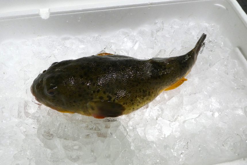 【カワハギ】体色や斑紋は個体変異が多く、心理状態によっても変化するといいます。皮は厚く、ウロコがないように見えますが、ザラッとしたウロコがあります。オスの背びれ第2軟条は糸状に伸び、メスは伸びません。写真(千葉県産)手前 […]