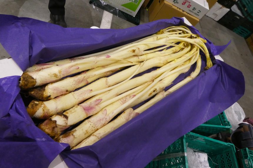【タケノコ】食用としているものは数種類ありますが、写真は「淡竹(はちく)」。最も多く出回っているタケノコは孟宗竹(もうそうちく)で、淡竹は孟宗竹よりも後に出てきますので、これからが旬。細長く、赤紫がかった色をしていて、ア […]